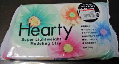 ハーティクレイソフト 軽量紙粘土。手につきにくく、細工しやすい。自然乾燥タイプ。乾くと非常に軽くなって、丈夫。 白色なので、彩色や混色も容易。 200g 410〜600円 (カラータイプも12色ぐらいあります。50g 172〜210円) |